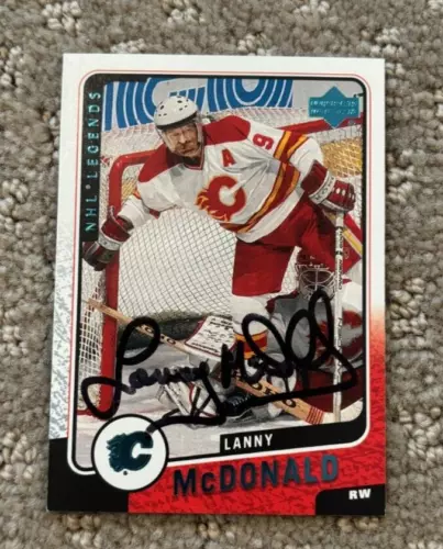 2000-01 UPPER DECK LEGENDS FLAMES CARD #19 LANNY MCDONALD SIGNED AUTOGRAPHED COLLECTIBLE MEMORABILIA