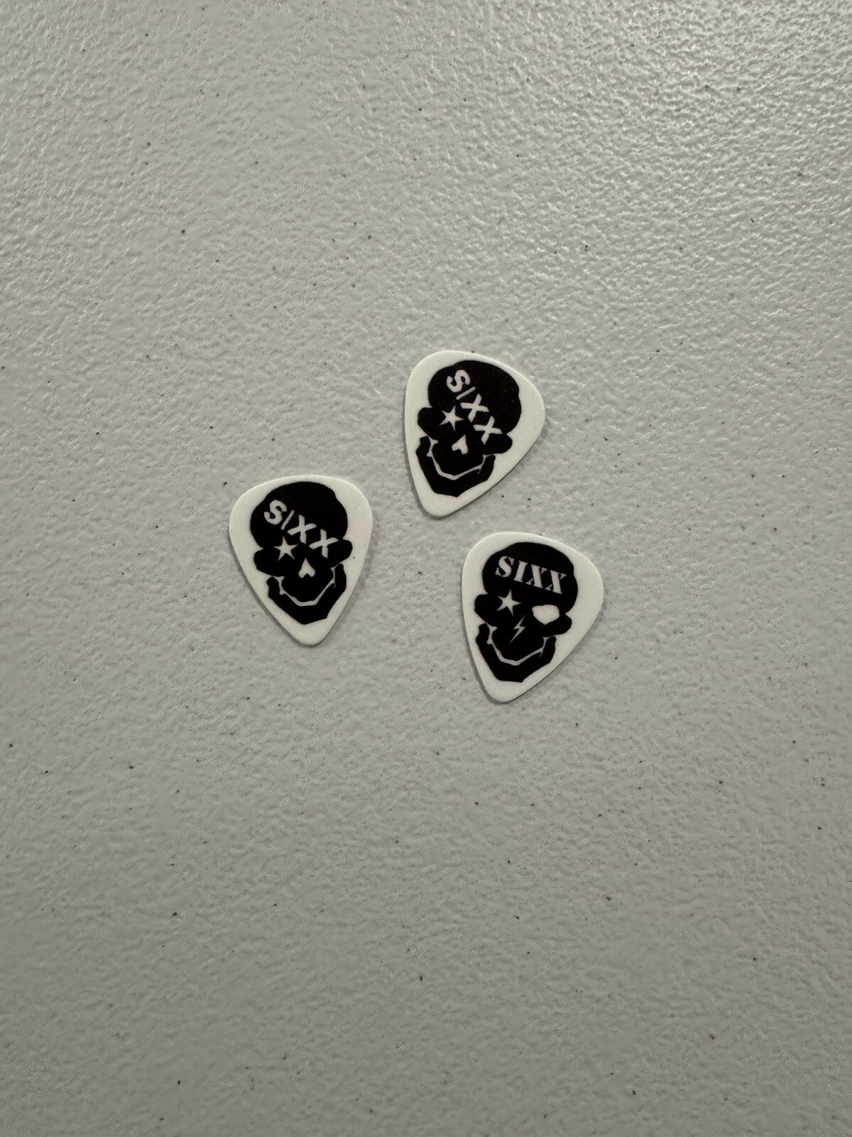 3 NIKKI SIXX GUITAR PICKS WITH EXACT PROOF MOTLEY CRUE COLLECTIBLE MEMORABILIA