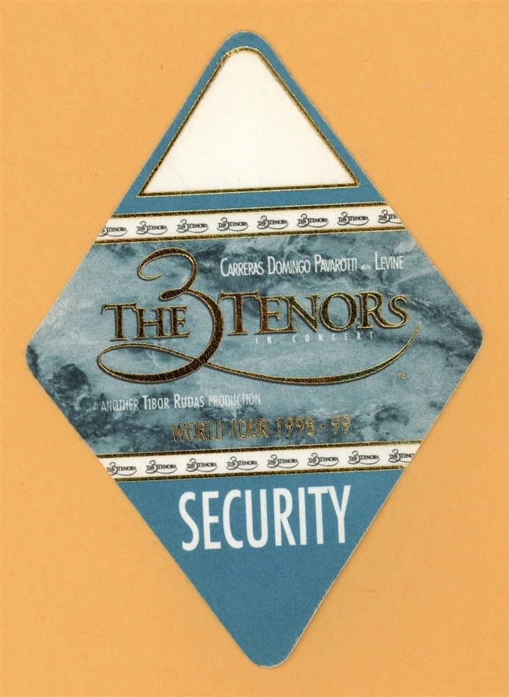 3 TENORS 1998 LUCIANO PAVAROTTI CONCERT TOUR SECURITY BACKSTAGE PASS COLLECTIBLE MEMORABILIA
