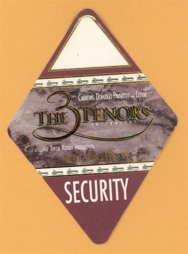 3 TENORS 1998 LUCIANO PAVAROTTI CONCERT TOUR SECURITY BACKSTAGE PASS COLLECTIBLE MEMORABILIA