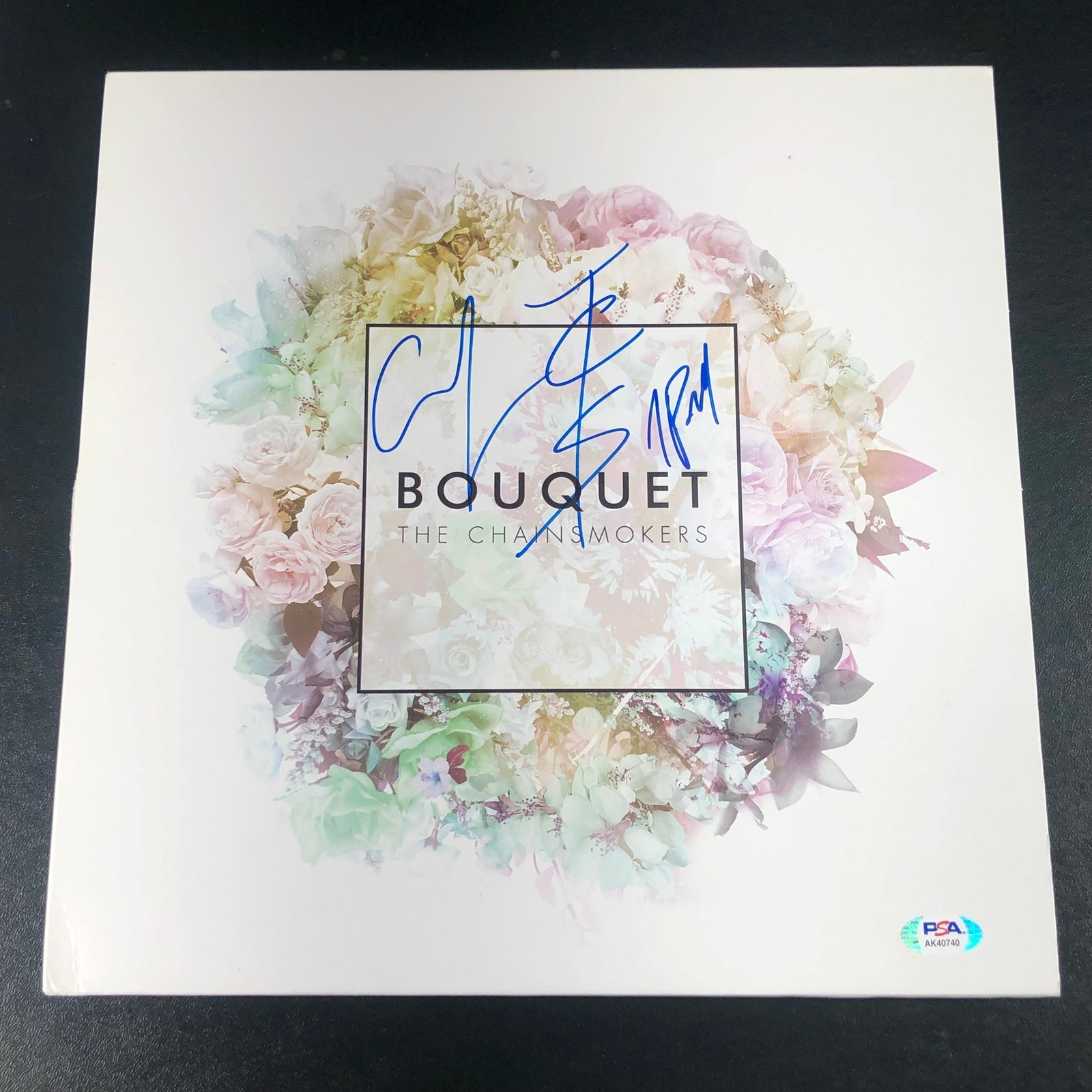 ALEX PALL ANDREW TAGGART SIGNED THE CHAINSMOKERS’ BOUQUET LP VINYL PSA/DNA ALBUM COLLECTIBLE MEMORABILIA