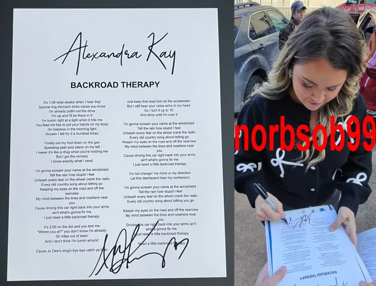 ALEXANDRA KAY SIGNED AUTOGRAPH BACKROAD THERAPY LYRIC SHEET W/EXACT PROOF COLLECTIBLE MEMORABILIA