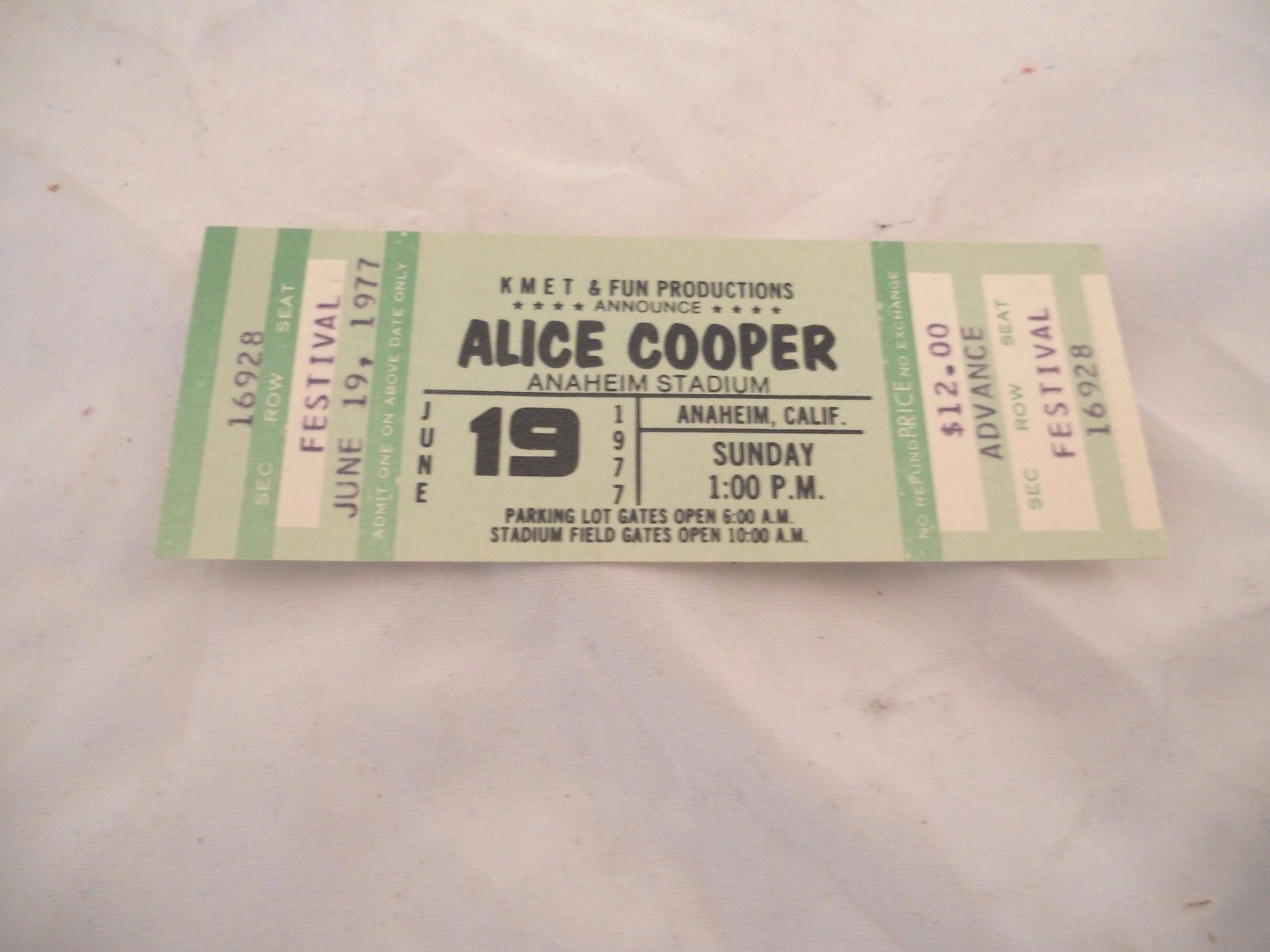 ALICE COOPER 1977 KING OF THE SILVER SCREEN TOUR NM UN-USED CONCERT TICKET COLLECTIBLE MEMORABILIA