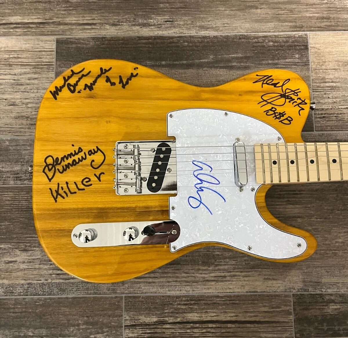 This unique, autographed guitar was inspected and confirmed 100% genuine by professional authenticators with years of industry experience. The item comes with a Certificate of Authenticity card and an attached numbered tamper-proof hologram so you can verify its authenticity anytime at www.autographia.com.