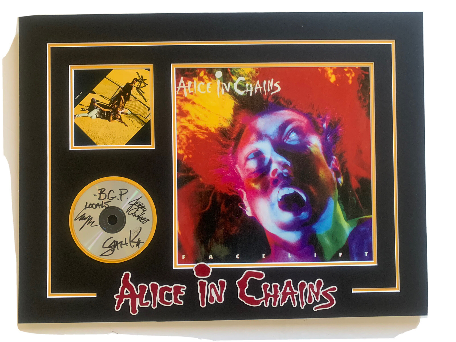 ALICE IN CHAINS SIGNED MATTED CD W/ 12×12 PHOTO BAS CERTIFIED LAYNE STALEY COLLECTIBLE MEMORABILIA