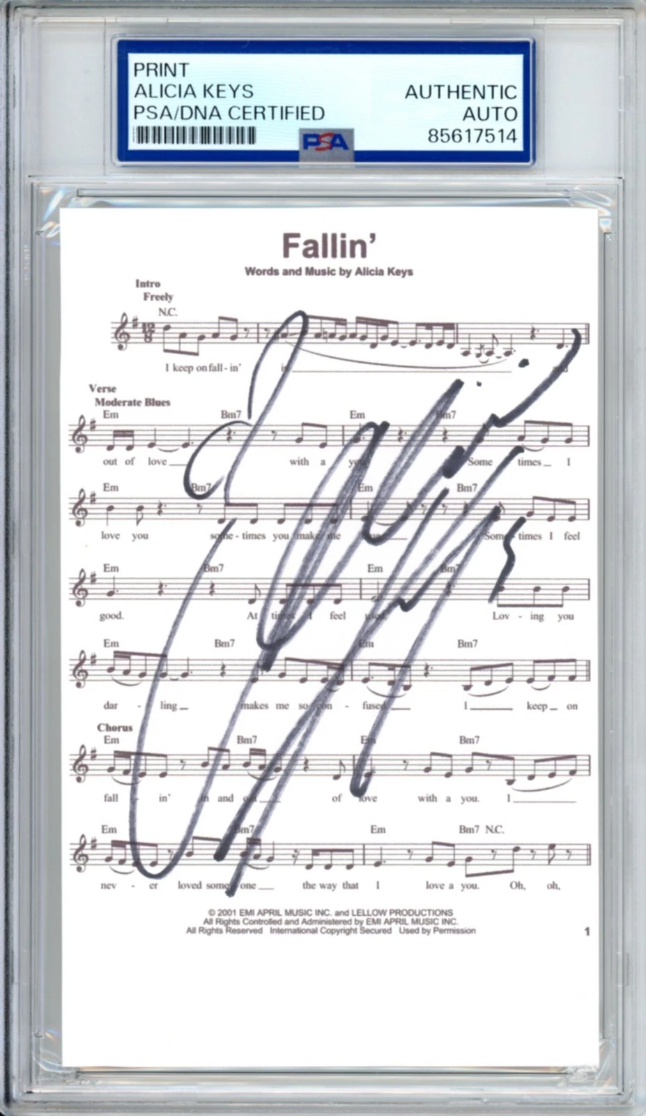 ALICIA KEYS SIGNED FALLIN’ LYRIC SHEET MUSIC PIANO PSA DNA COA AUTOGRAPHED RARE COLLECTIBLE MEMORABILIA