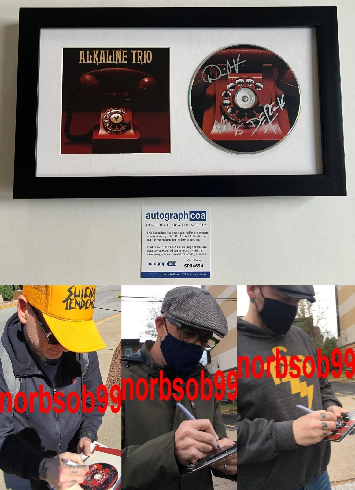 ALKALINE TRIO SIGNED IS THIS THING CURSED FRAMED CD MATT SKIBA +2 W/PROOF & COA COLLECTIBLE MEMORABILIA