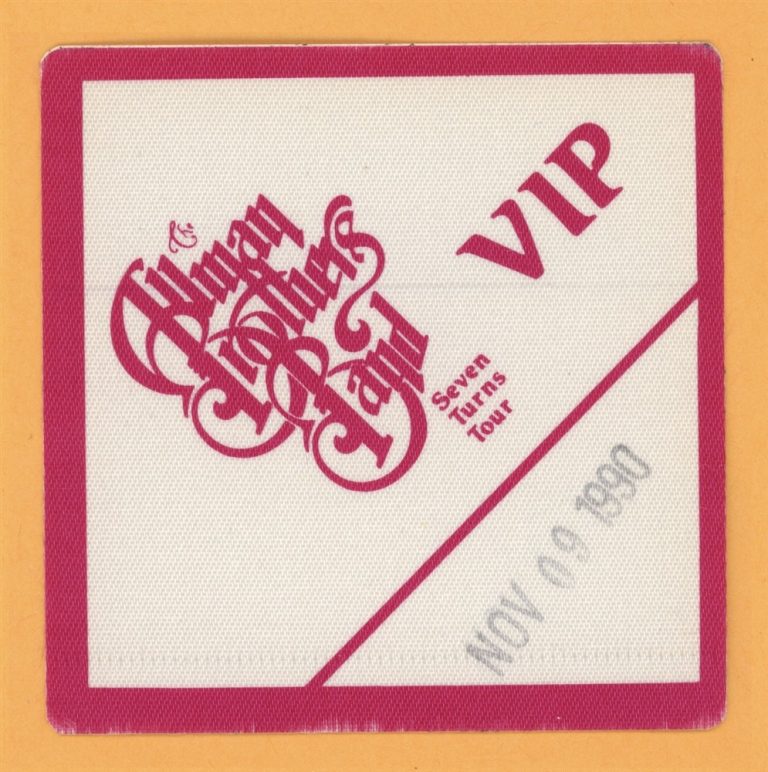 ALLMAN BROTHERS 1990 SEVEN TURNS CONCERT TOUR VIP BACKSTAGE PASS COLLECTIBLE MEMORABILIA