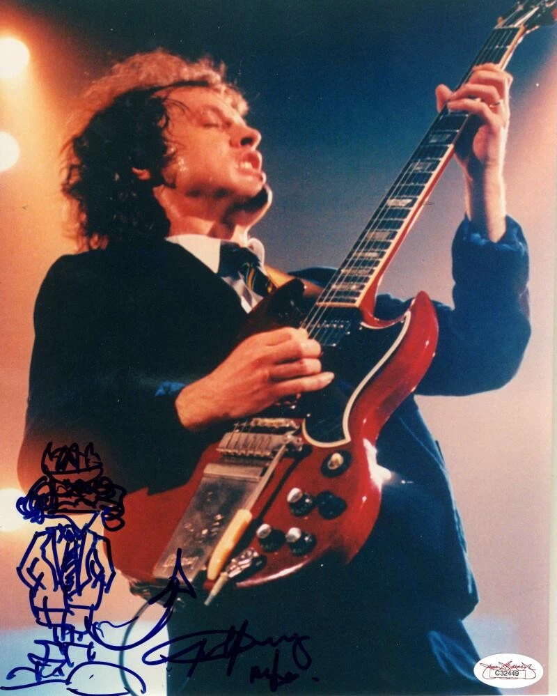 ANGUS YOUNG AC/DC SIGNED AUTOGRAPH 8×10 PHOTO WITH AMAZING ORIGINAL ART JSA COA COLLECTIBLE MEMORABILIA