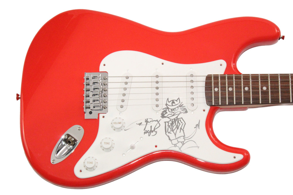 ANGUS YOUNG SIGNED AUTOGRAPH RED FENDER GUITAR AMAZING ORIGINAL ART SKETCH JSA COLLECTIBLE MEMORABILIA