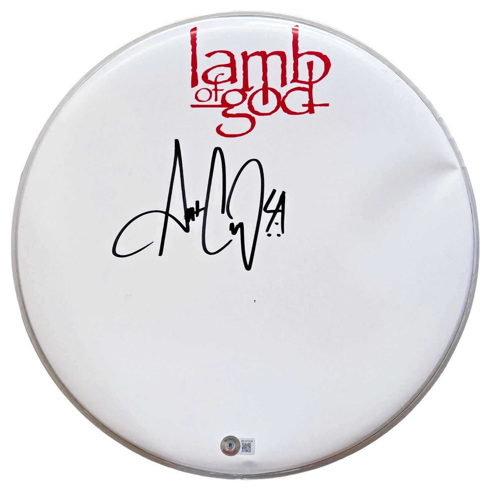 ART CRUZ SIGNED LAMB OF GOD 14″ DRUMHEAD BAND DRUMMER AUTOGRAPH BECKETT COA COLLECTIBLE MEMORABILIA