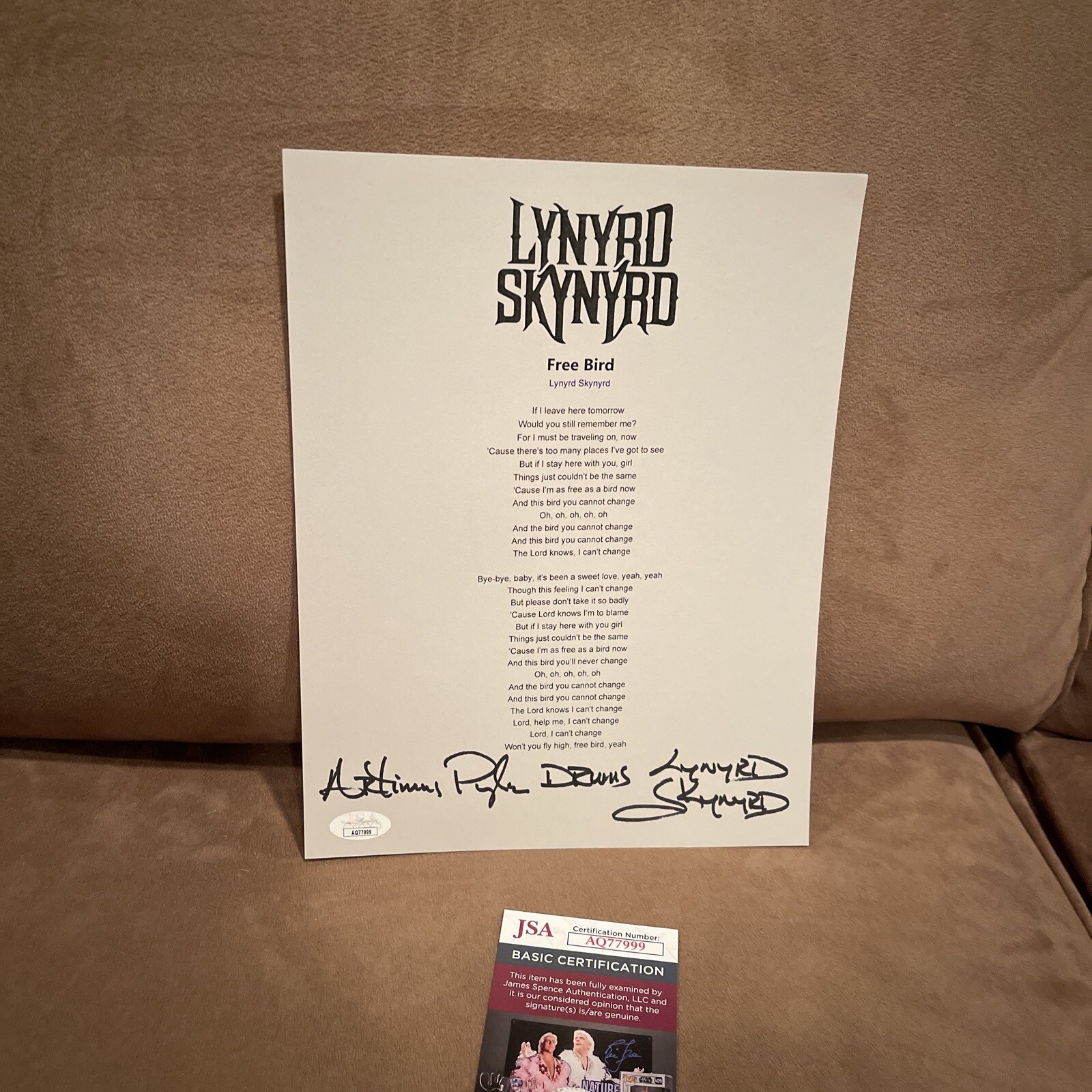 ARTIMUS PYLE LYNYRD SKYNYRD SIGNED AUTOGRAPHED FREE BIRD LYRIC SHEET JSA COLLECTIBLE MEMORABILIA