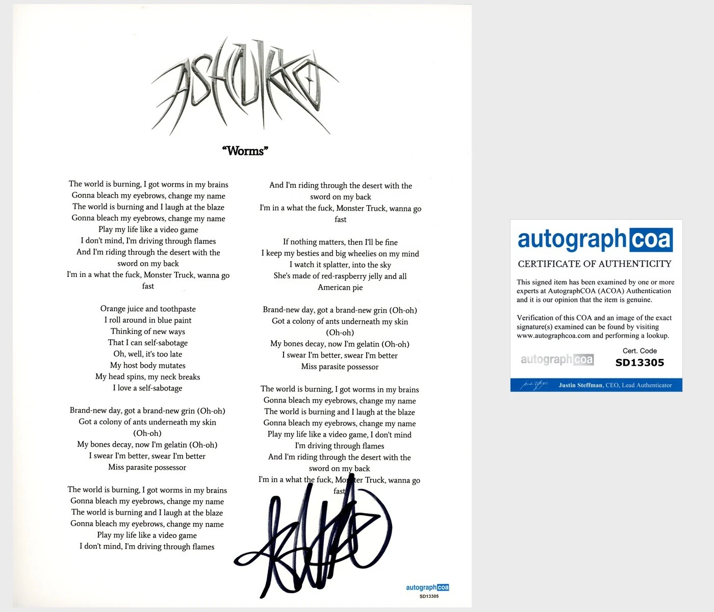 ‘ASHNIKKO’ SIGNED LYRIC SHEET ‘WORMS’ ACOA RARE PROOF COLLECTIBLE MEMORABILIA