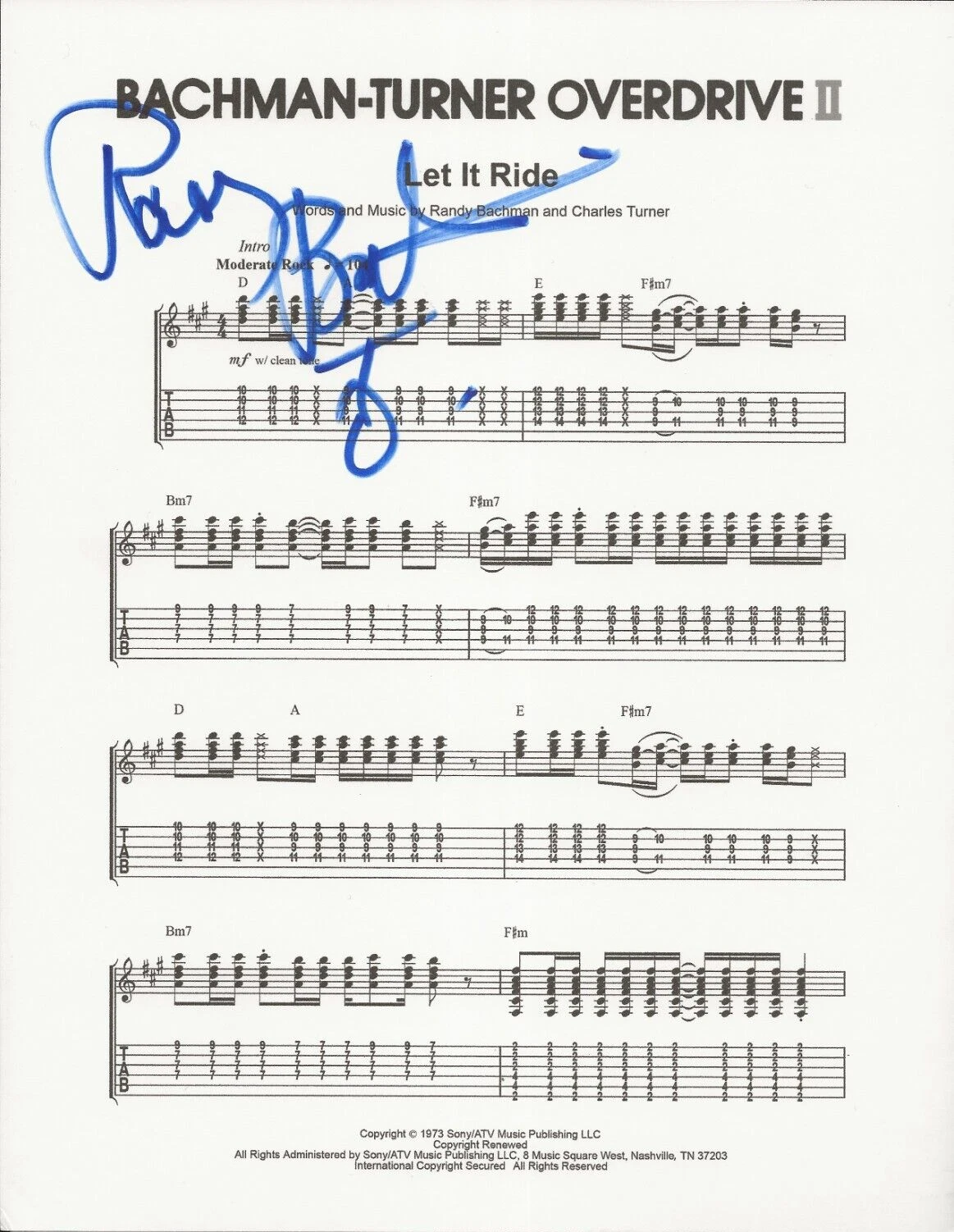 BACHMAN-TURNER OVERDRIVE SIGNED LET IT RIDE SHEET MUSIC COA BY RANDY GUESS WHO COLLECTIBLE MEMORABILIA