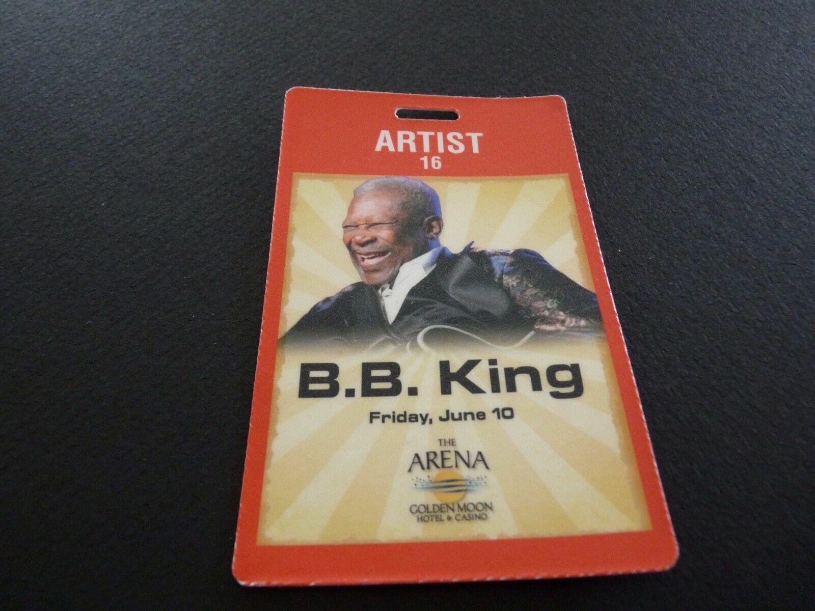BB KING TOUR ISSUED BACKSTAGE CONCERT PASS LAMINATE GOLDEN MOON CASINO #1 COLLECTIBLE MEMORABILIA