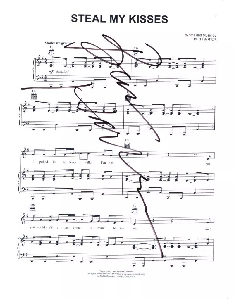 BEN HARPER SIGNED AUTOGRAPH STEAL MY KISSES SHEET MUSIC – BURN TO SHINE COLLECTIBLE MEMORABILIA
