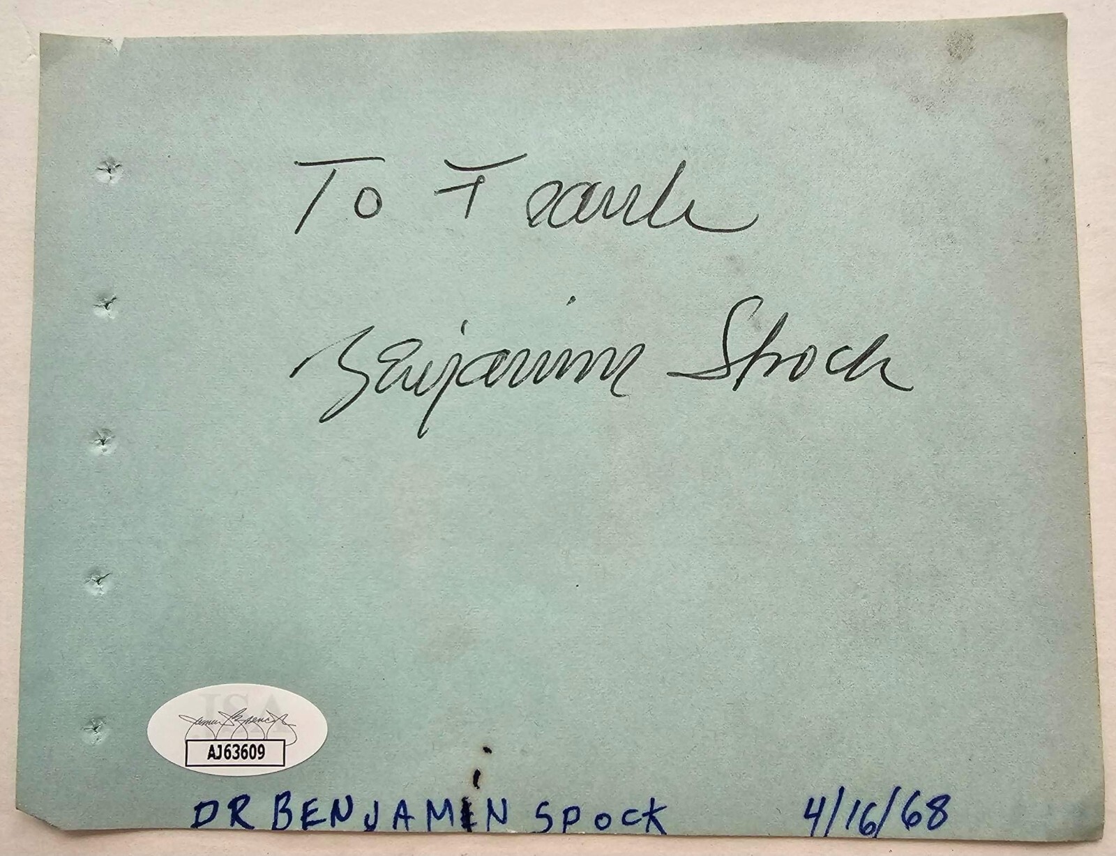 BENJAMIN SPOCK AUTHOR REAL HAND SIGNED VINTAGE ALBUM PAGE JSA COA PEDIATRICIAN COLLECTIBLE MEMORABILIA