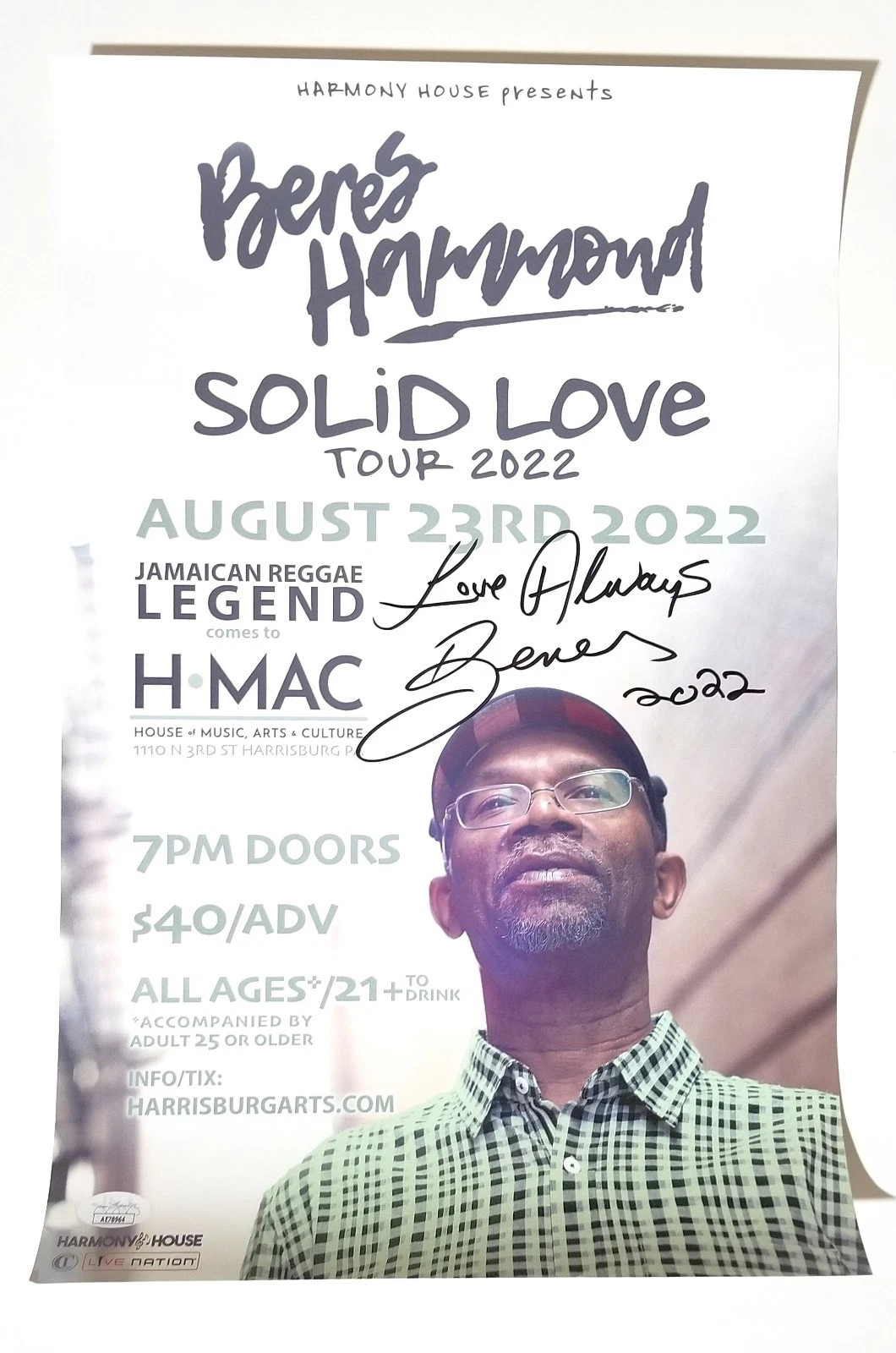 BERES HAMMOND REGGAE REAL SIGNED SOLID LOVE 2022 TOUR POSTER JSA COA AUTOGRAPHED COLLECTIBLE MEMORABILIA