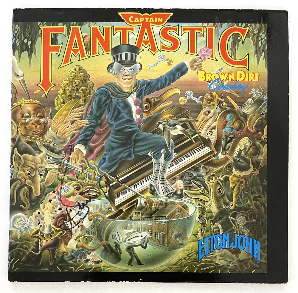BERNIE TAUPIN SIGNED AUTOGRAPH ALBUM LP – ELTON JOHN CAPTAIN FANTASTIC JSA COA COLLECTIBLE MEMORABILIA