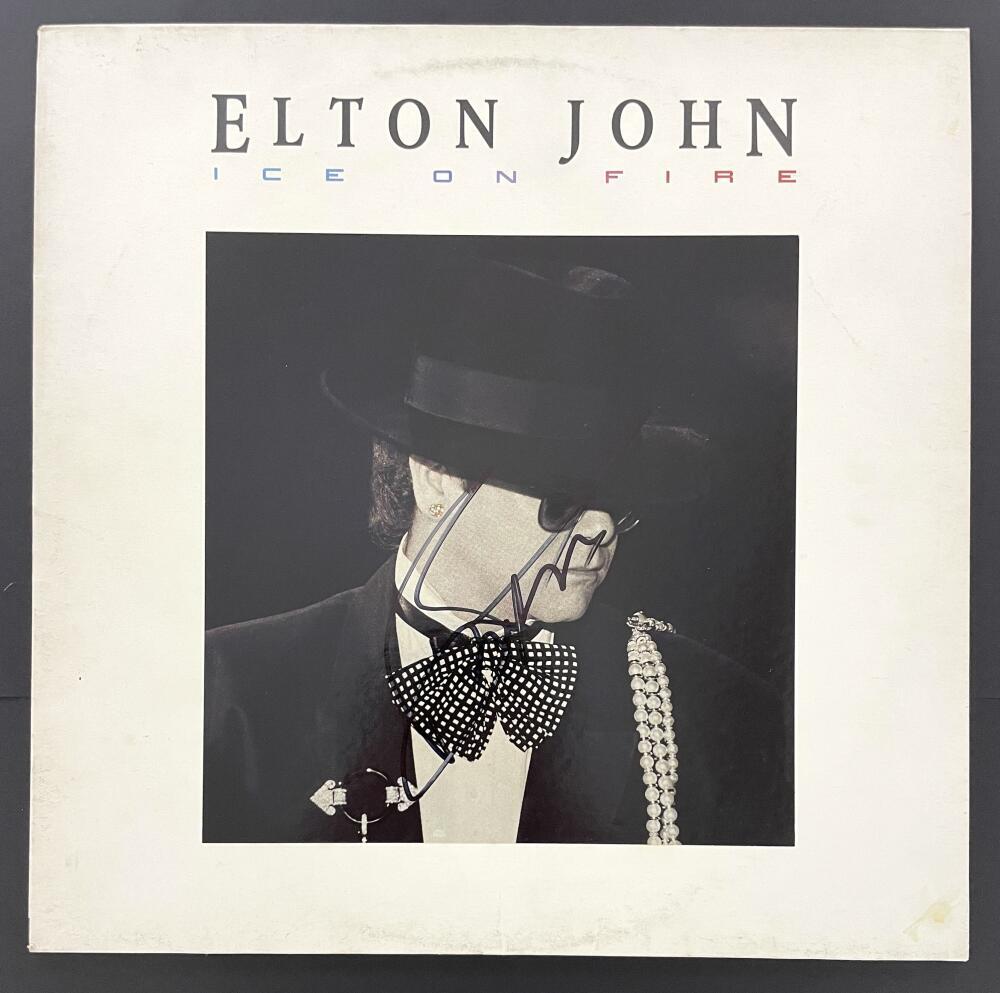 BERNIE TAUPIN SIGNED AUTOGRAPH ALBUM VINYL RECORD LP ELTON JOHN ICE ON FIRE JSA COLLECTIBLE MEMORABILIA