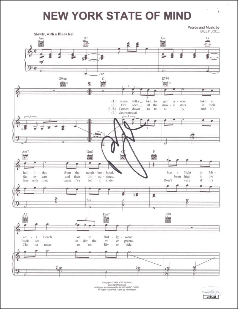 BILLY JOEL SIGNED AUTOGRAPH NEW YORK STATE OF MIND SHEET MUSIC – TURNSTILES COA COLLECTIBLE MEMORABILIA