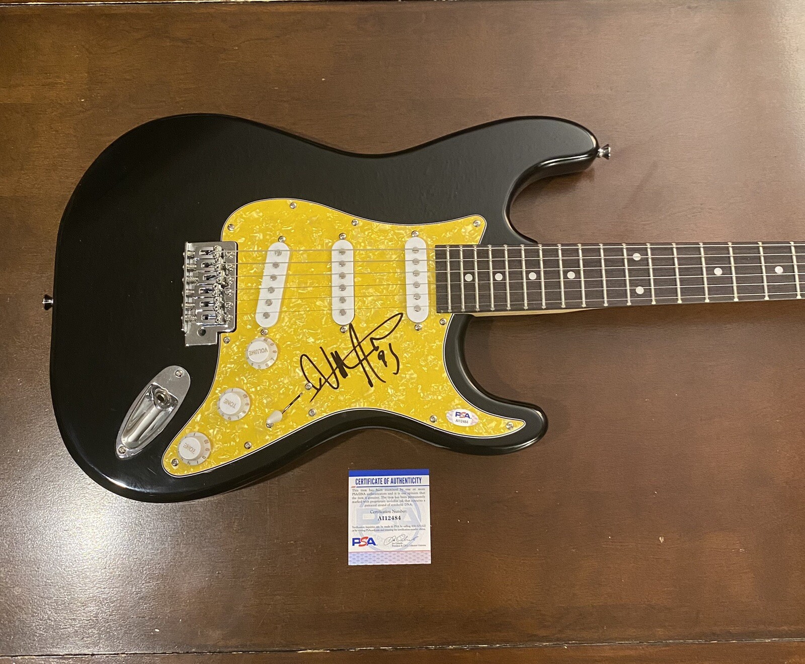 Get this rare, hand-signed guitar now. At Autographia, all autographed guitars carry a Certificate of Authenticity card with a dual matching hologram. Every item in our shop has been inspected and certified genuine by industry-leading authenticators.