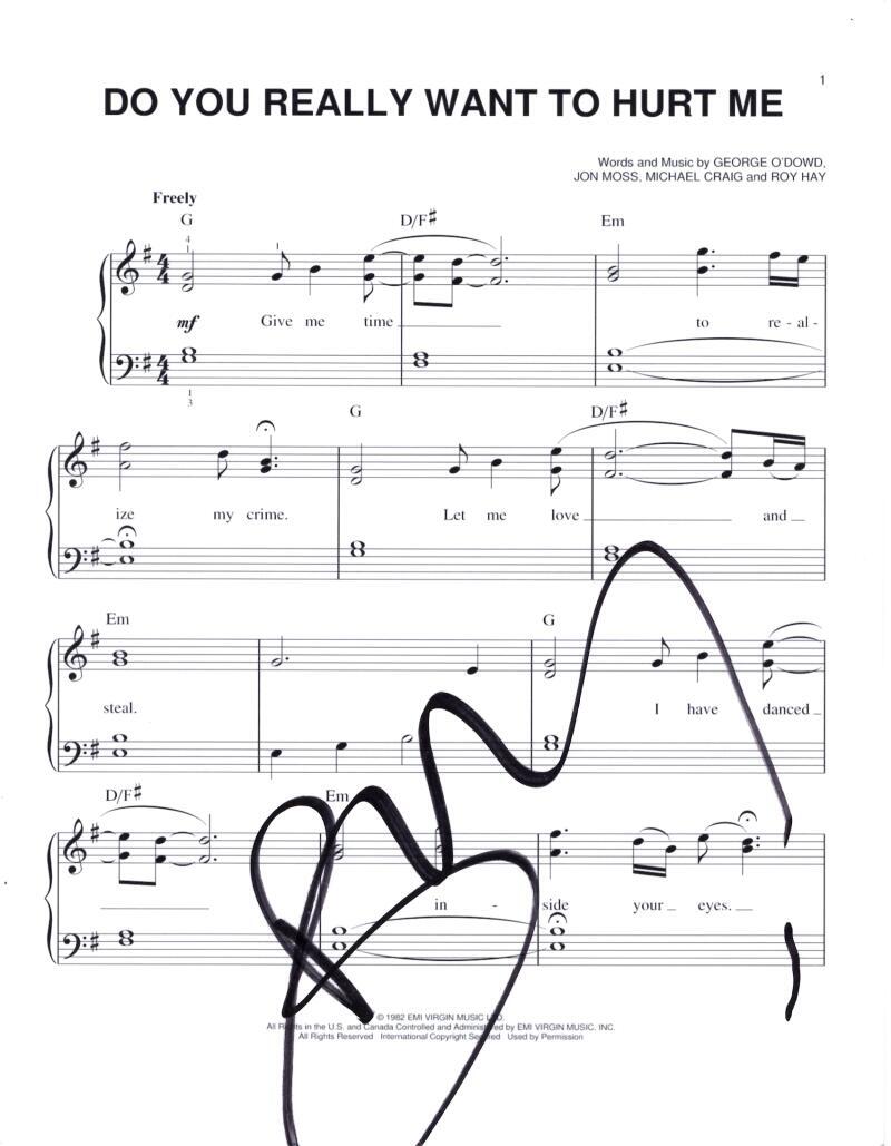 BOY GEORGE CULTURE CLUB SIGNED AUTOGRAPH DO YOU REALLY WANT HURT ME SHEET MUSIC COLLECTIBLE MEMORABILIA