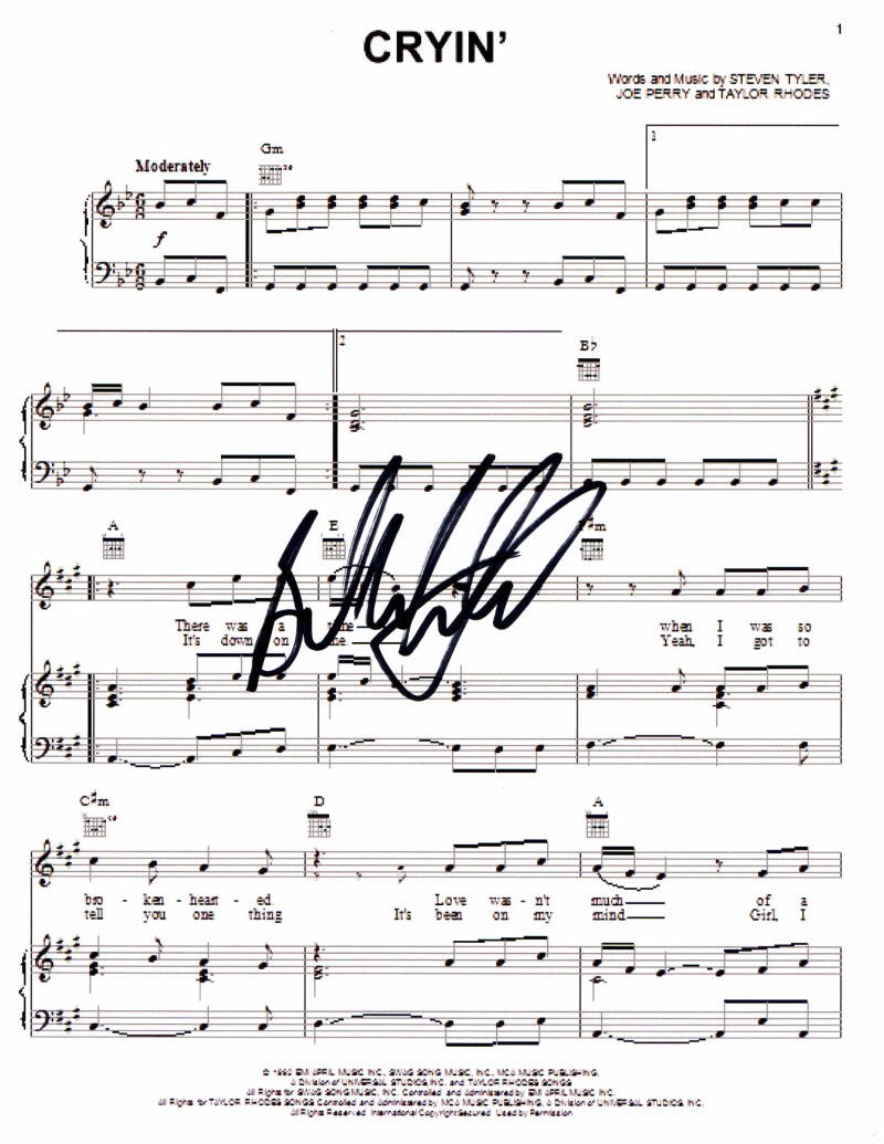 BRAD WHITFORD SIGNED AUTOGRAPH “CRYIN” SHEET MUSIC – AEROSMITH W/ STEVEN TYLER COLLECTIBLE MEMORABILIA