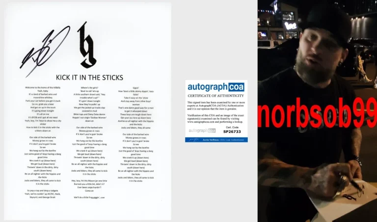 BRANTLEY GILBERT SIGNED KICK IT IN THE STICKS LYRIC SHEET W/EXACT PROOF & COA COLLECTIBLE MEMORABILIA