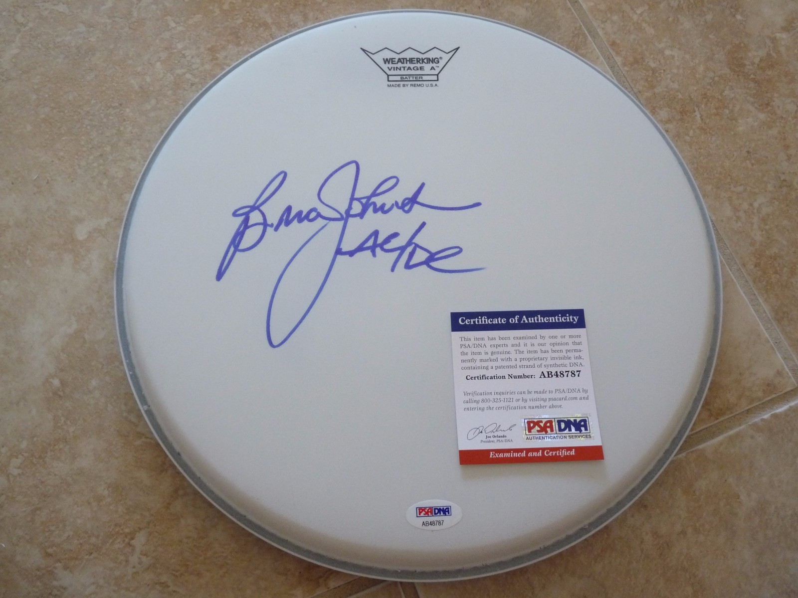 BRIAN JOHNSON AC/DC SIGNED AUTOGRAPHED PSA CERTIFIED 10″ REMO DRUMHEAD #2 COLLECTIBLE MEMORABILIA