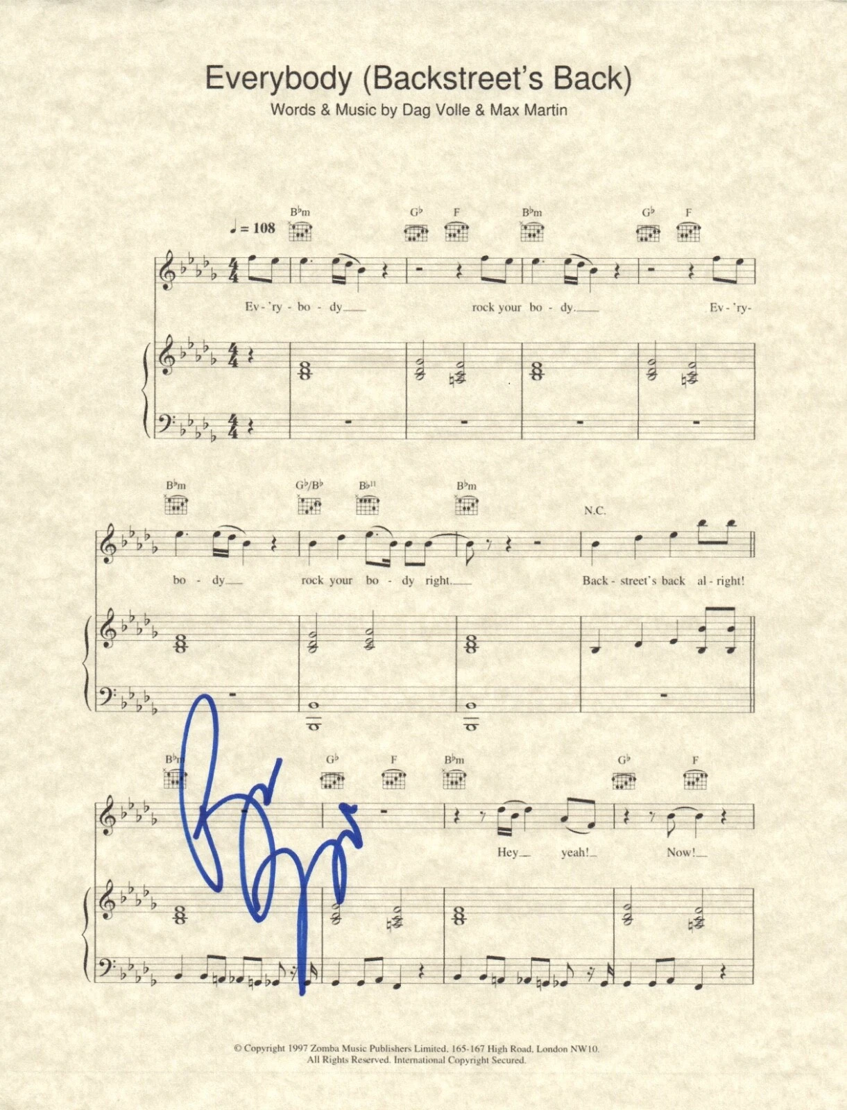 BRIAN LITTRELL BACKSTREET BOYS SIGNED EVERYBODY BACKSTEET’S BACK SHEET MUSIC COA COLLECTIBLE MEMORABILIA