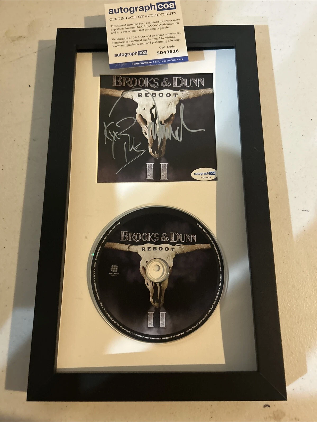 BROOKS & DUNN SIGNED AUTOGRAPH FRAMED CD DISPLAY ACOA REBOOT II COUNTRY BAND COLLECTIBLE MEMORABILIA