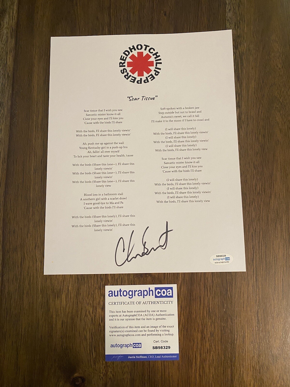 CHAD SMITH RED HOT CHILI PEPPERS ‘SCAR TISSUE’ LYRIC SHEET DRUMMER ACOA COLLECTIBLE MEMORABILIA