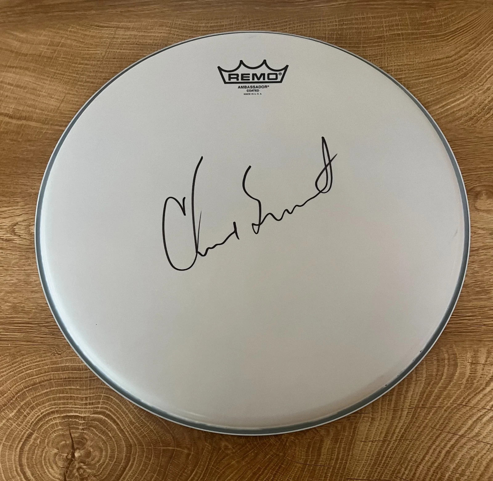 * CHAD SMITH * SIGNED 14″ REMO DRUMHEAD * RED HOT CHILI PEPPERS * COLLECTIBLE MEMORABILIA