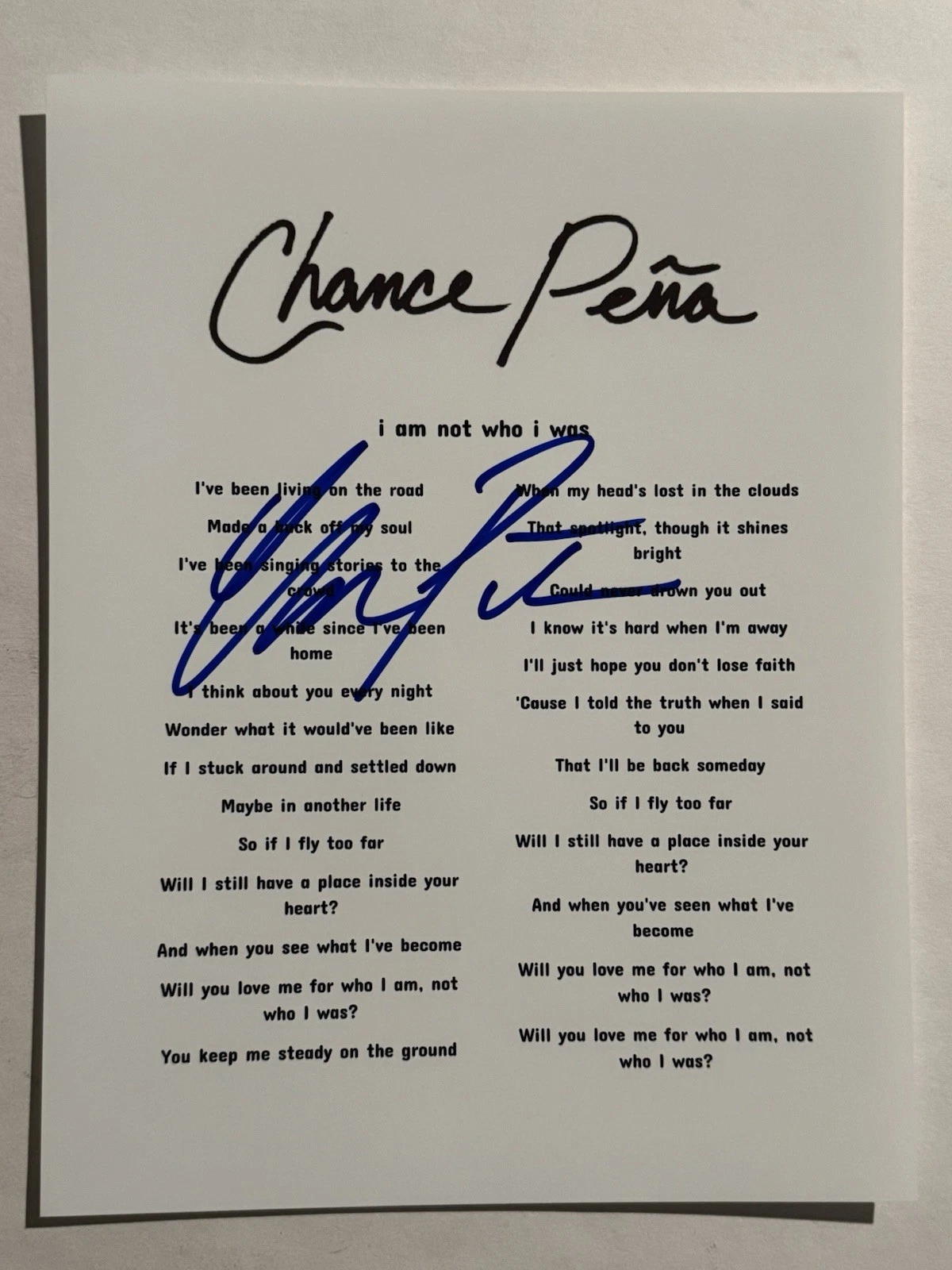 CHANCE PENA HAND SIGNED LYRIC SHEET AUTOGRAPHED INDIE POP SINGER RARE COA COLLECTIBLE MEMORABILIA