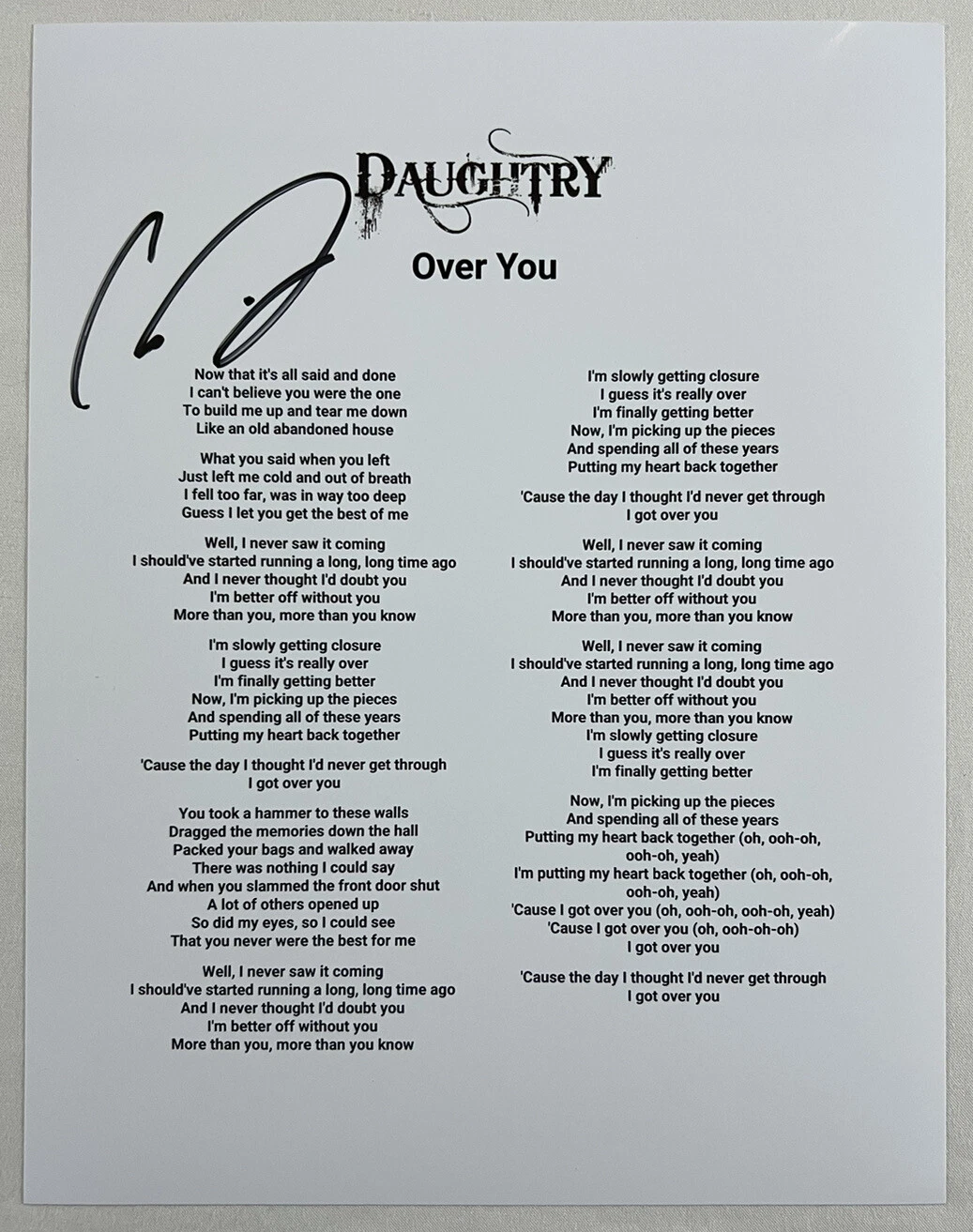 CHRIS DAUGHTRY SIGNED LYRIC SHEET SINGER ROCK POP AUTHENTIC AUTOGRAPH COA COLLECTIBLE MEMORABILIA