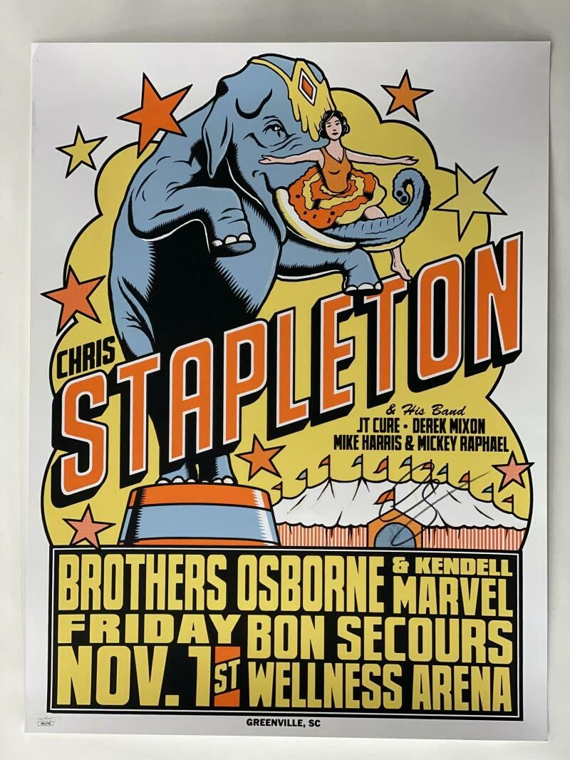 CHRIS STAPLETON SIGNED AUTOGRAPH 18X24 CONCERT TOUR POSTER – GREENVILLE SC JSA COLLECTIBLE MEMORABILIA