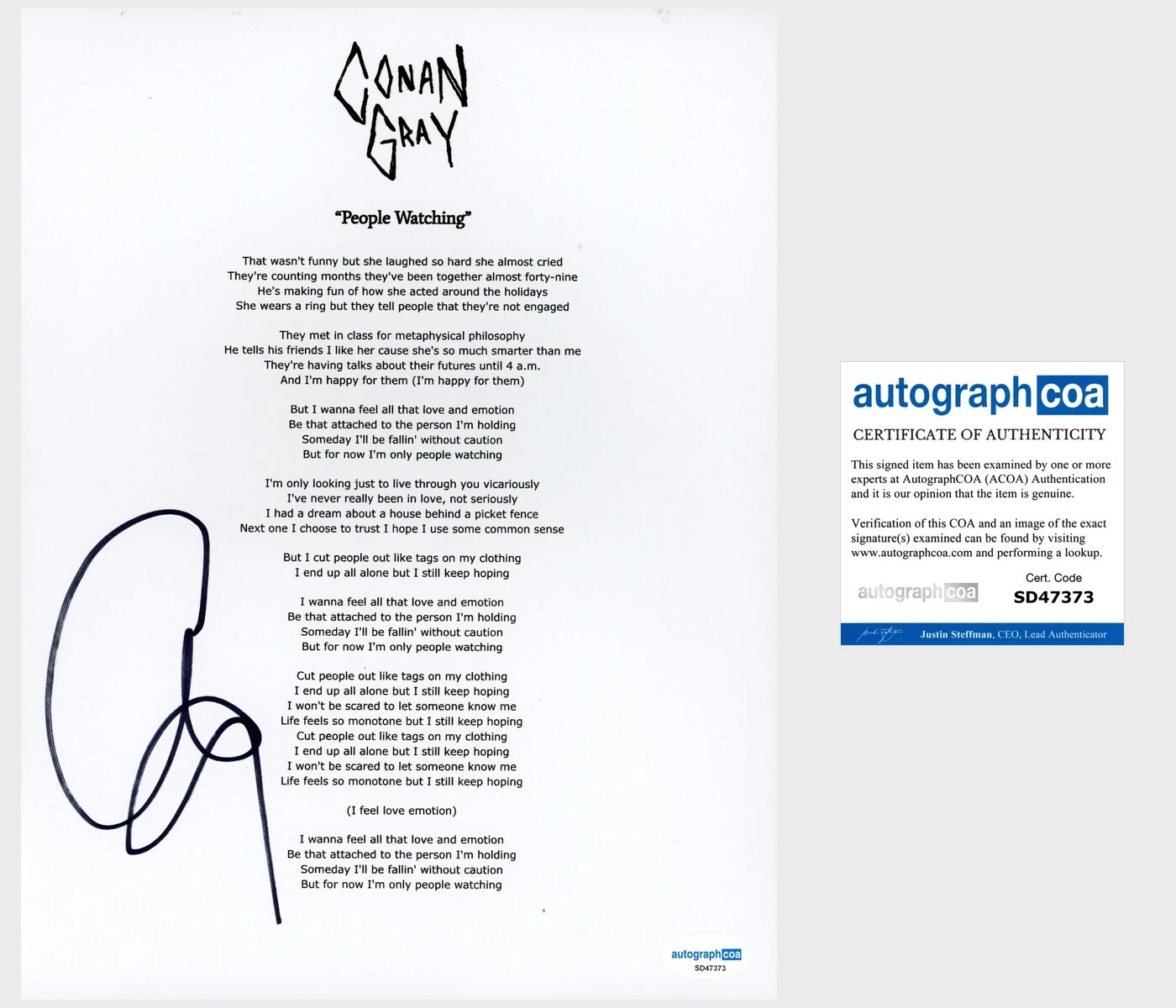 CONAN GRAY SIGNED ‘PEOPLE WATCHING’ LYRIC SHEET POP SINGER ACOA COLLECTIBLE MEMORABILIA
