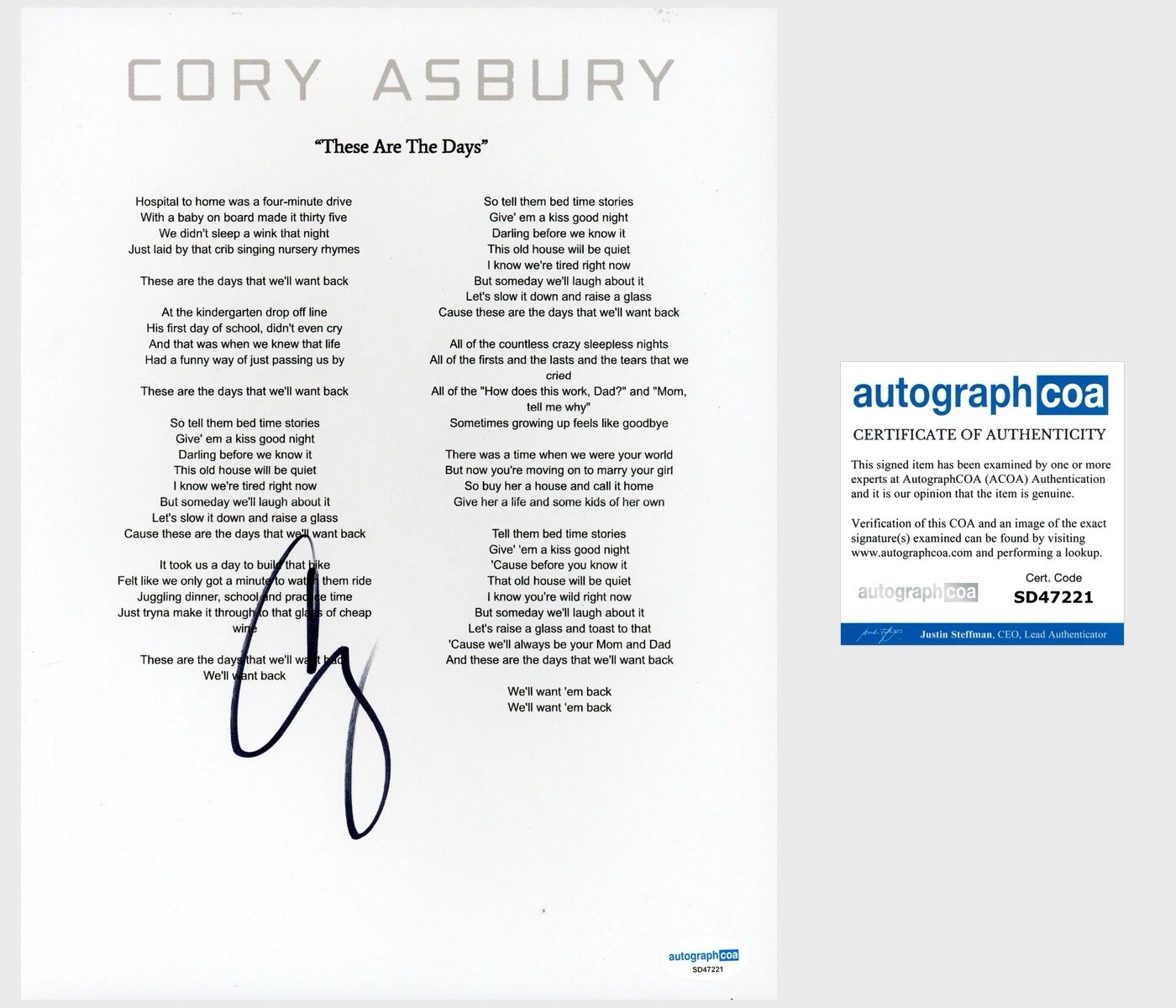 CORY ASBURY ‘THESE ARE THE DAYS’ SIGNED LYRIC SHEET CHRISTIAN MUSIC ACOA PROOF COLLECTIBLE MEMORABILIA