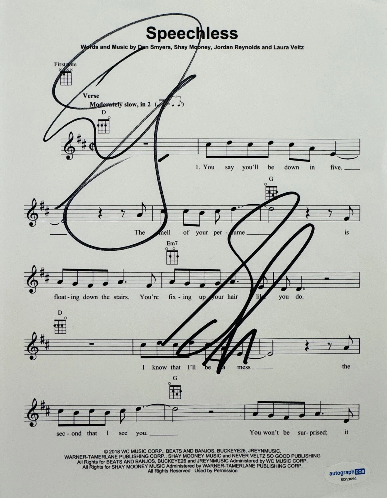 DAN SMYERS SHAY MOONEY SIGNED AUTOGRAPH LYRIC SHEET MUSIC SPEECHLESS ACOA COLLECTIBLE MEMORABILIA