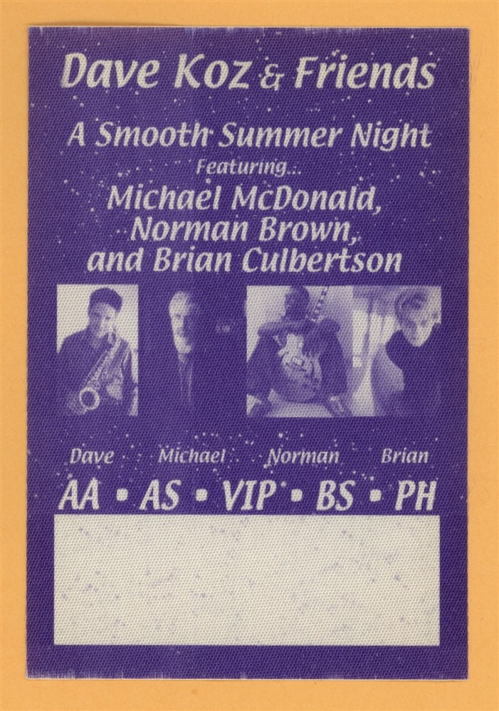 DAVE KOZ 2005 MICHAEL MCDONALD CONCERT TOUR BACKSTAGE PASS COLLECTIBLE MEMORABILIA