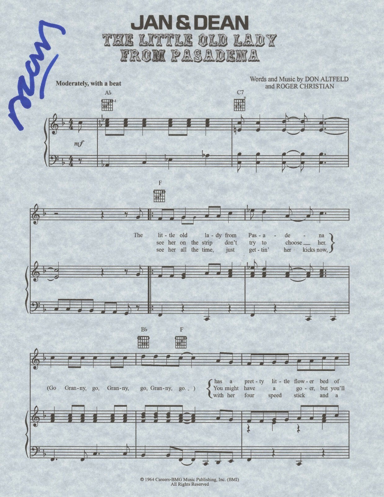 DEAN TORRENCE SIGNED LITTLE OLD LADY FROM PASADENA SHEET MUSIC #2 COA JAN & DEAN COLLECTIBLE MEMORABILIA