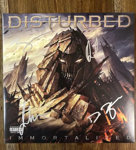 ‘DISTURBED’ BAND SIGNED VINYL ALBUM ‘IMMORTALIZED’ DAVID DRAIMAN +3 PROOF COLLECTIBLE MEMORABILIA