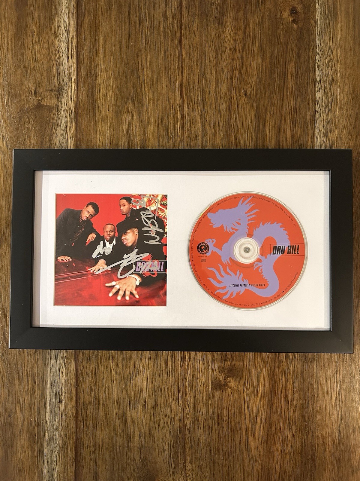 ‘DRU HILL’ RAP GROUP SIGNED FRAMED CD ‘SELF TITLED’ RARE SISQO, NOKIO & JAZZ COLLECTIBLE MEMORABILIA