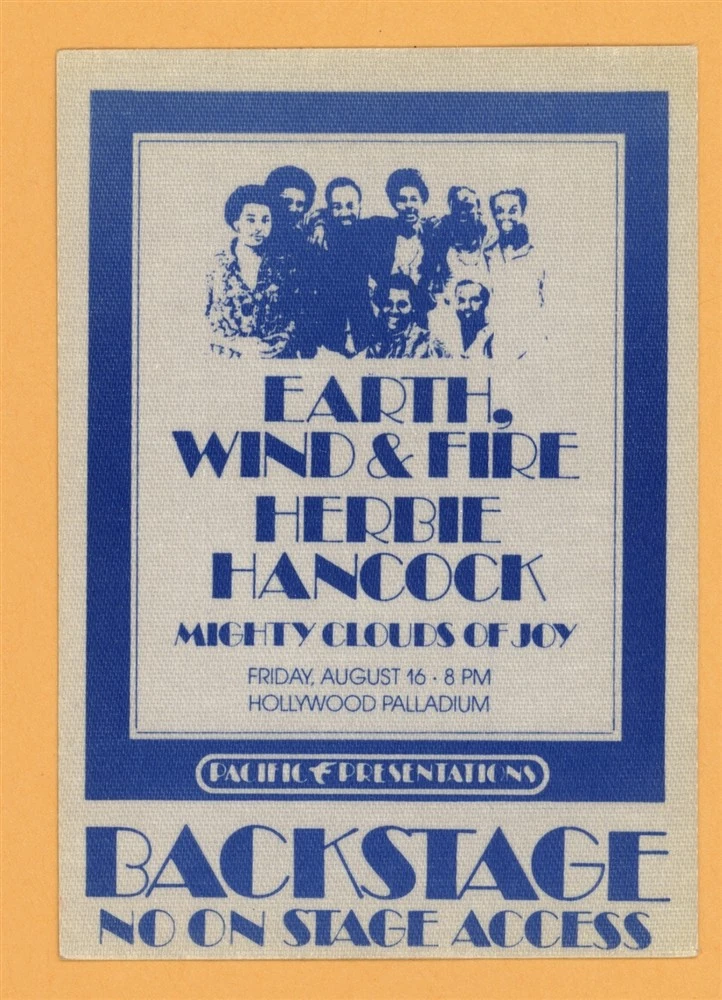 EARTH WIND & FIRE 1978 HERBIE HANCOCK CONCERT TOUR BACKSTAGE PASS COLLECTIBLE MEMORABILIA
