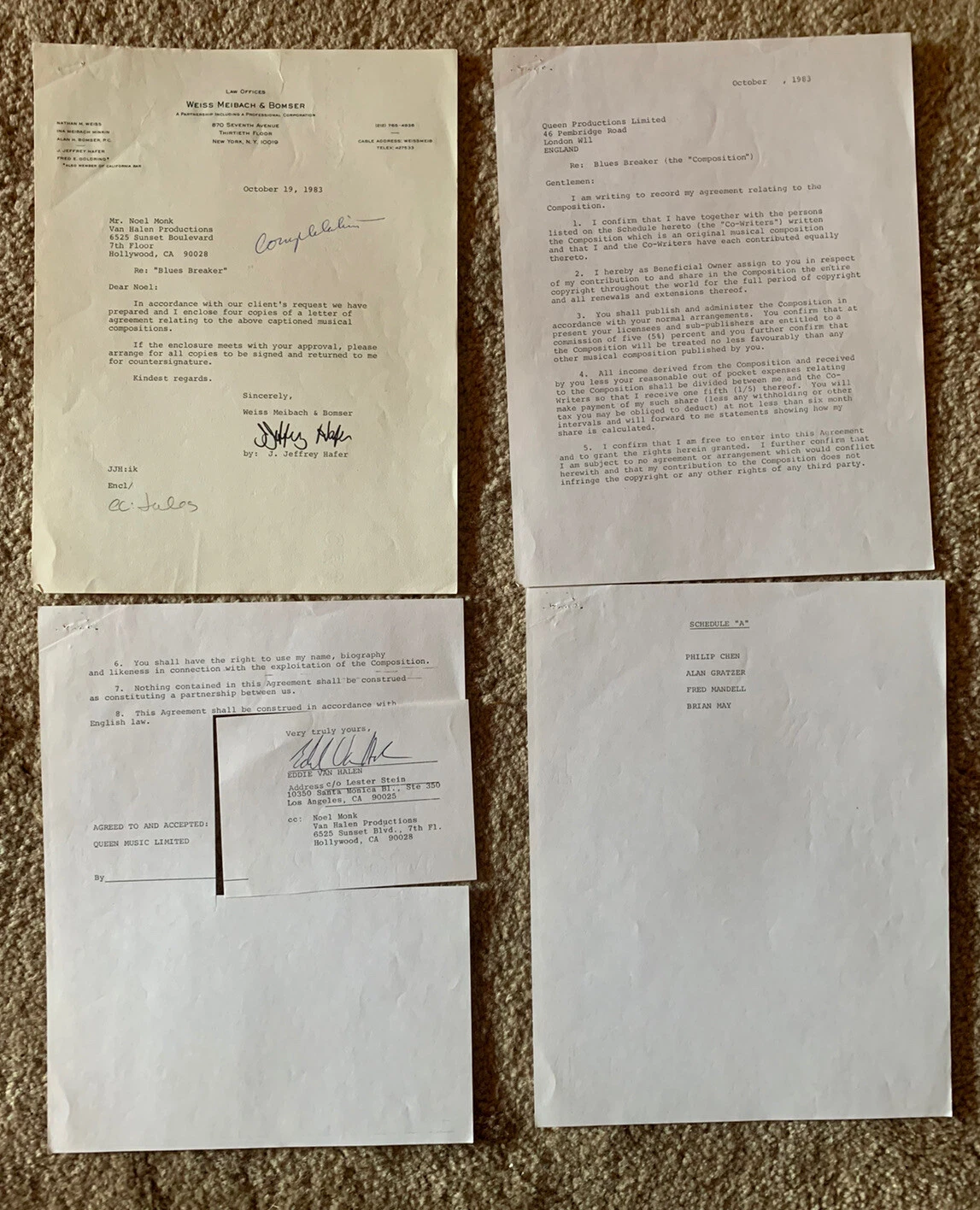 EDDIE VAN HALEN ORIGINAL 1983 PUBLISHING CONTRACT SIGNED AUTOGRAPH BAS CERTIFIED COLLECTIBLE MEMORABILIA
