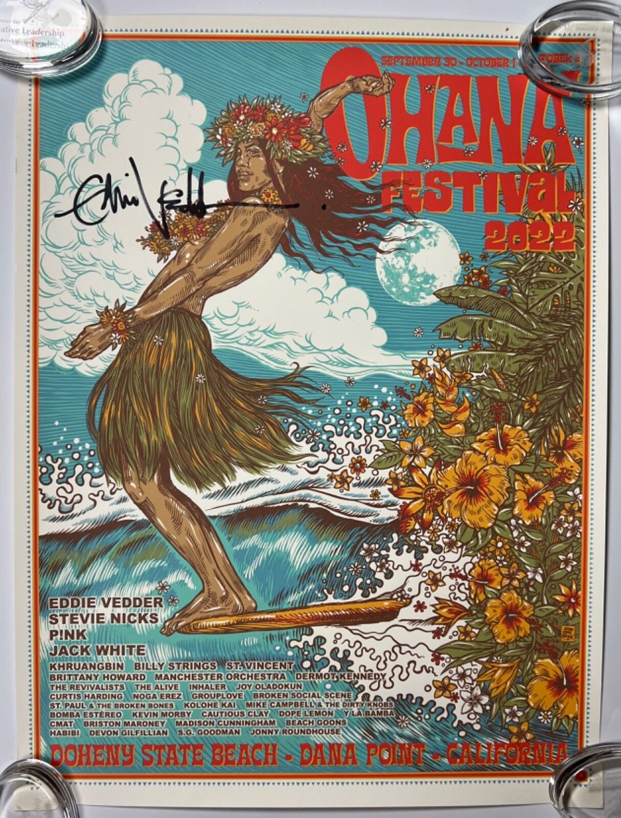 EDDIE VEDDER JSA SIGNED AUTOGRAPHED OHANA FESTIVAL 2022 LITHOGRAPH POSTER COLLECTIBLE MEMORABILIA