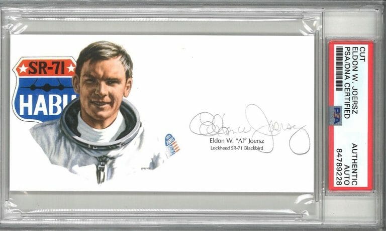 ELDON JOERSZ SIGNED CUT SIGNATURE PSA DNA 84789228 SR-71 PILOT WORLD AIR RECORD COLLECTIBLE MEMORABILIA