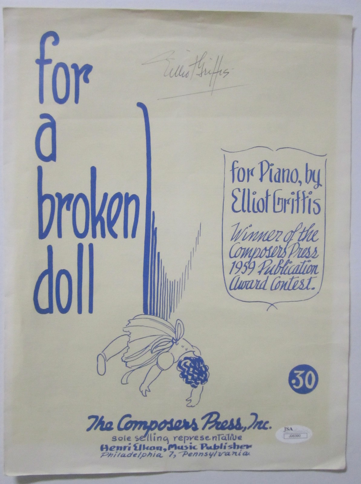 ELLIOT GRIFFIS HAND SIGNED 1960 AWARD WINNING COMPOSER SHEET MUSIC JSA COA COLLECTIBLE MEMORABILIA