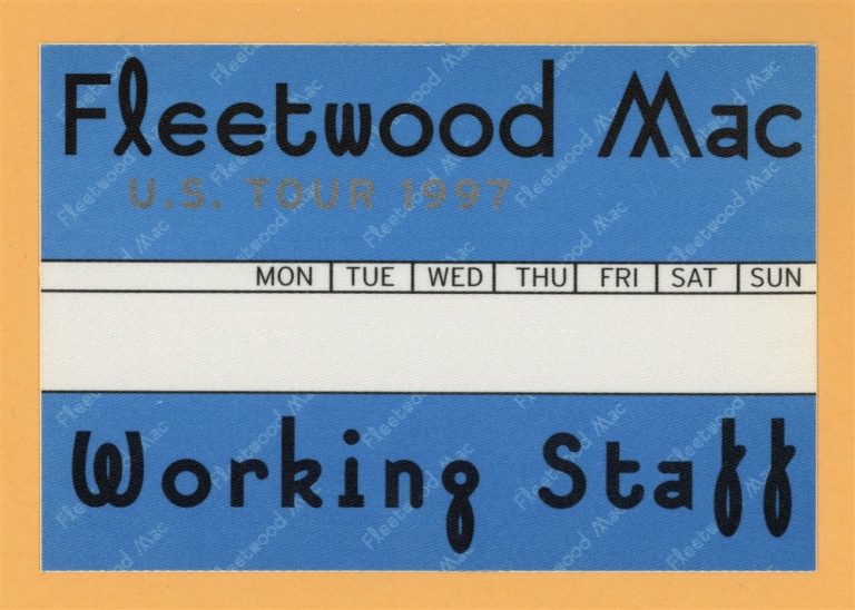 FLEETWOOD MAC 1997 THE DANCE CONCERT TOUR WORKING BACKSTAGE PASS COLLECTIBLE MEMORABILIA
